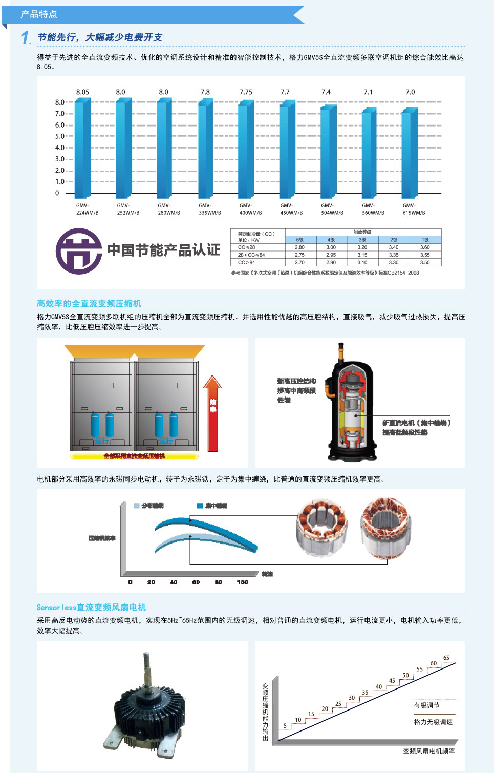 簡介:業(yè)內(nèi)領(lǐng)先的能效比,全新突破舒適性、智能控制、設計自由度等方面 GMV5S 全直流變頻多聯(lián)機組全部采用戶高能效變頻壓縮機,以領(lǐng)先的全直流變頻技術(shù)開創(chuàng)節(jié)能舒適空調(diào)的新紀元。相較普通直流變頻空調(diào),GMV5S機組硬件配置高,整機性能更出色。此外,GMV5S還具有節(jié)能效果顯著提升、機組運行更可靠、運行調(diào)節(jié)更精準、舒適效果更明顯等四大優(yōu)勢,為客戶帶來