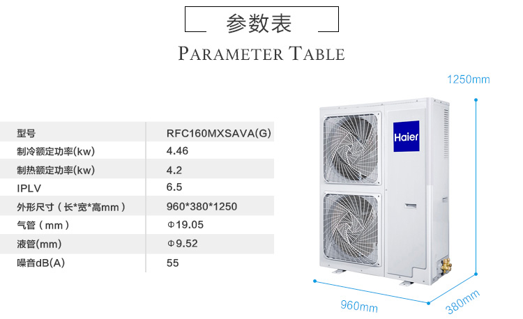 | 外機(jī)尺寸(寬x高x深)mm | 960/380/1250 |