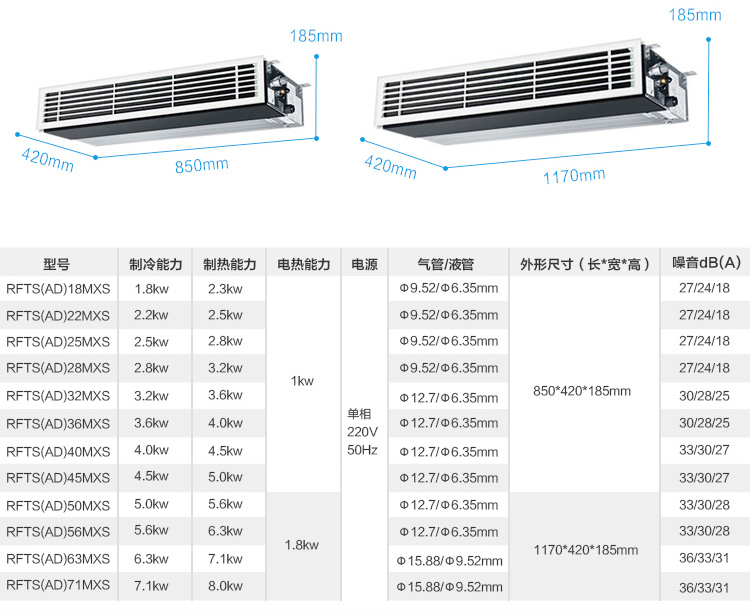 | 內(nèi)機(jī)尺寸(寬x高x深)mm | 850/420/185、1170/420/185 |