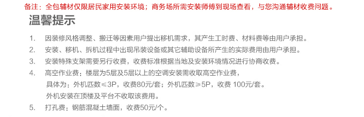 | 其它 | WIFI控制、超靜音、冷暖變頻 |